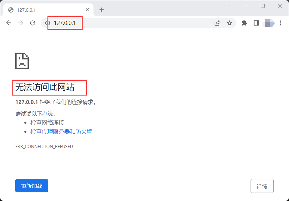 问题一:浏览器访问http://127.0.0.1时无法访问