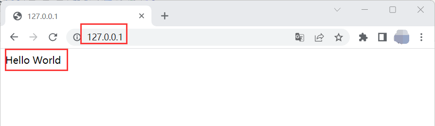 修改完成后再次访问127.0.0.1,此时出现Hello World。