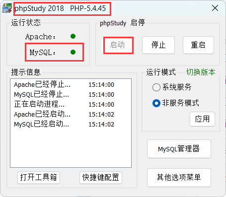 问题三:PHPStudy的mysql启动不成功,一直报红