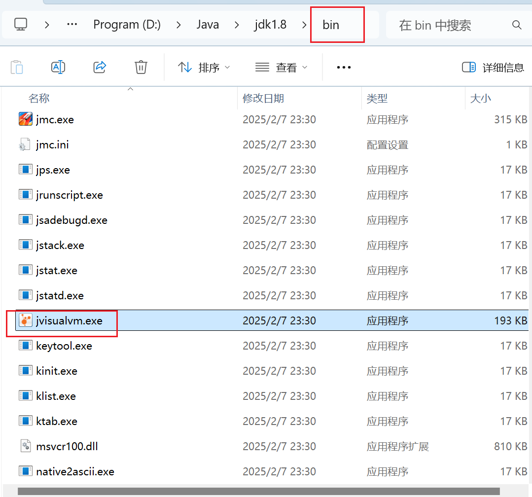 VisualVM 集成在 JDK 中(JDK8自带,bin目录下有