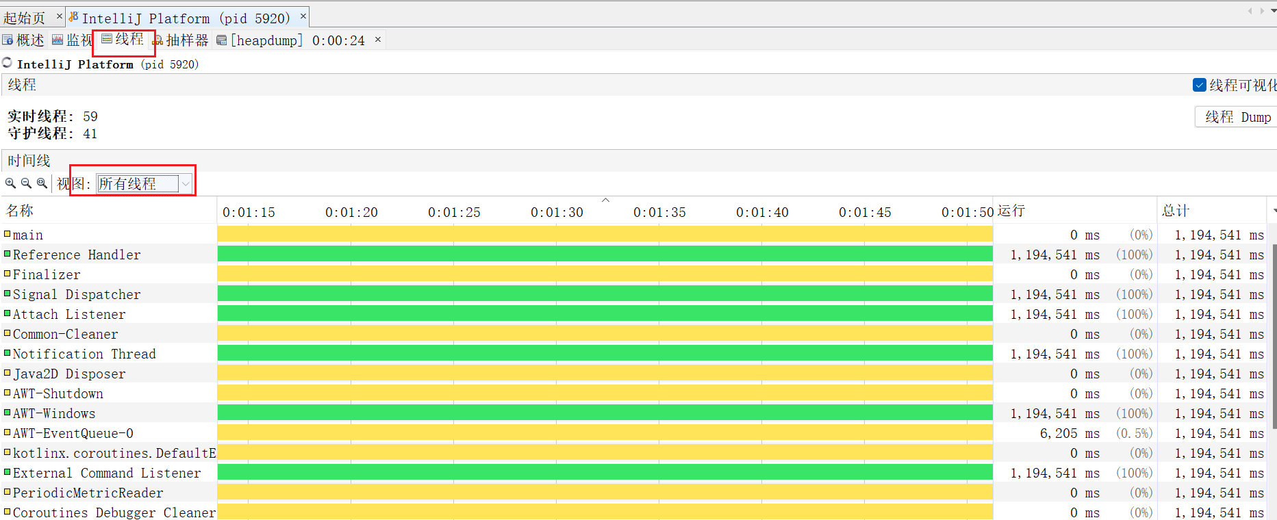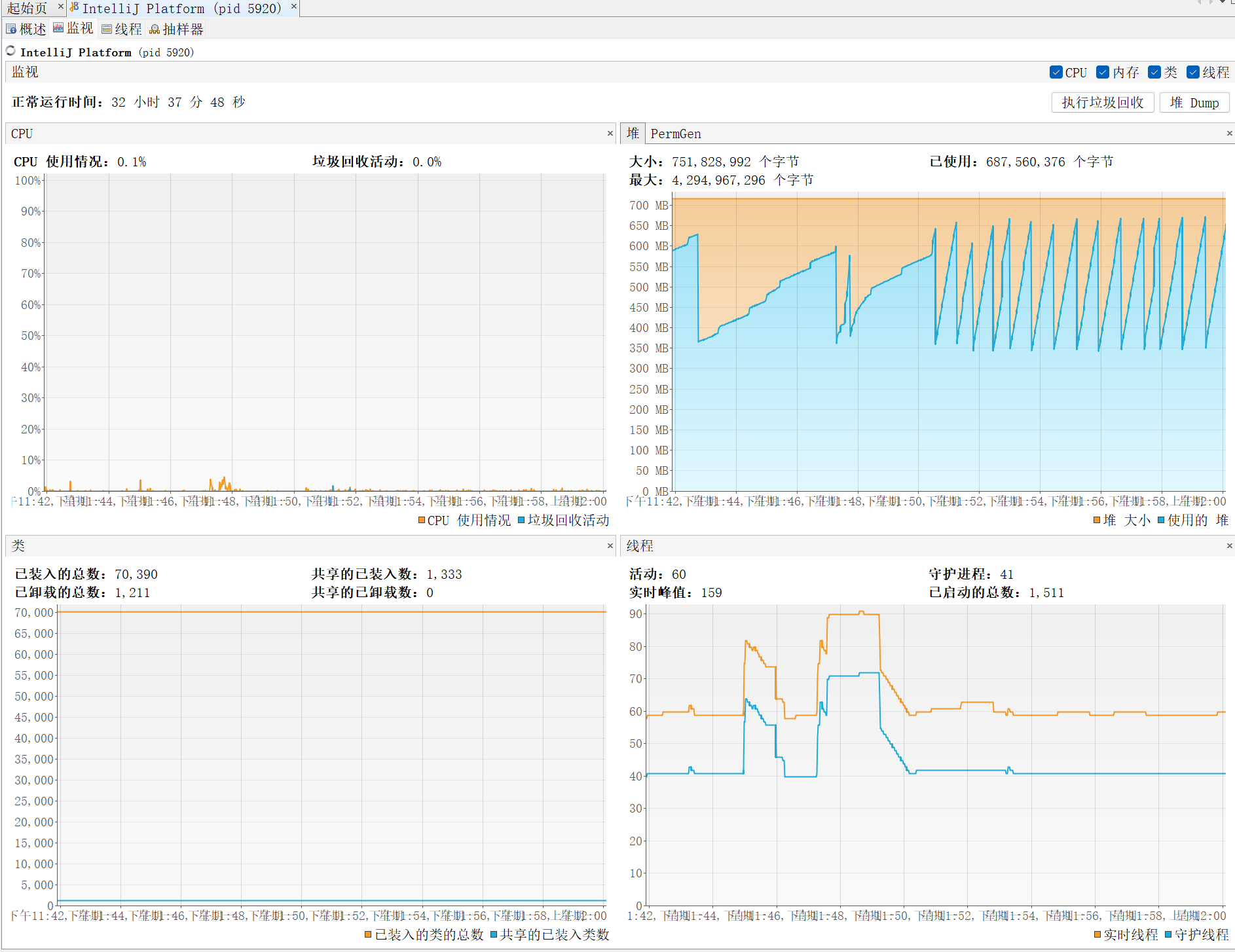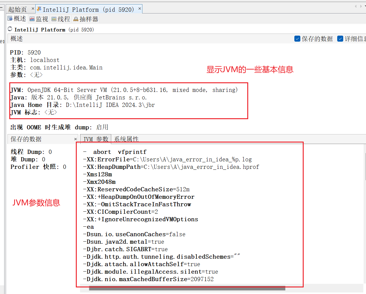 连接到一个 Java 进程(比如 IntelliJ IDEA 本身,或者你自己的应用程序)后,可以看到以下模块:
