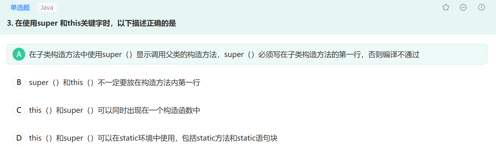 如果不是第一行,可能中间有语句会使用到子类字段/方法,此时父类可能还没准备好 → ❌ 编译失败。