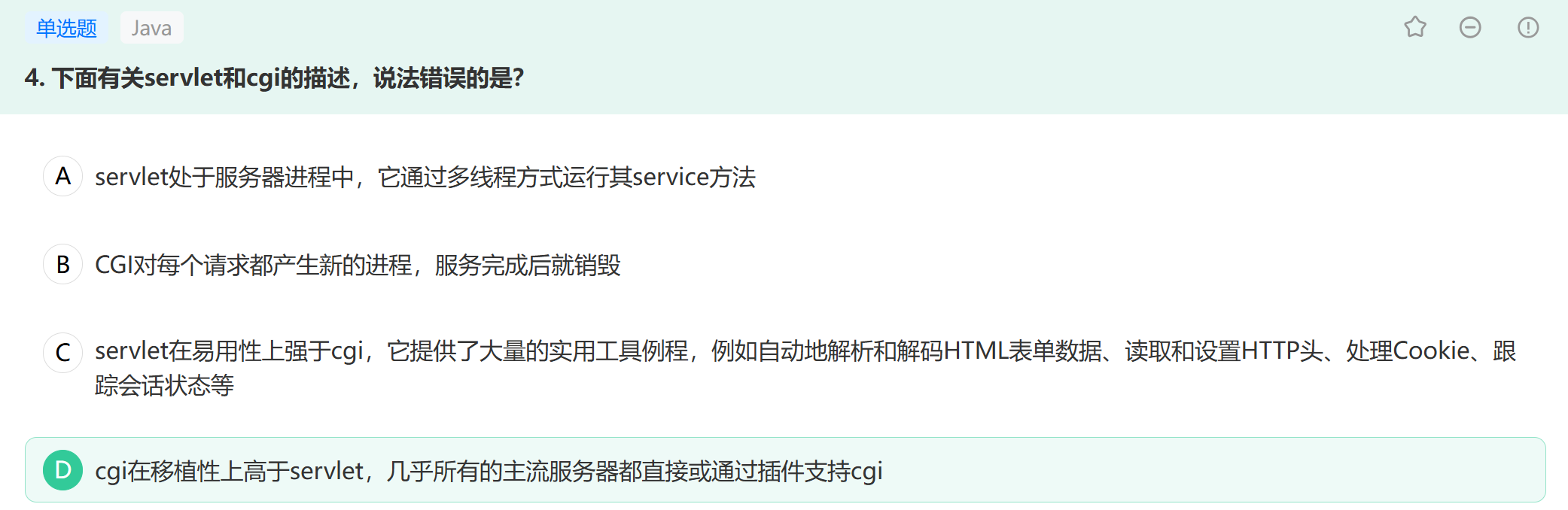 | 项目 | Servlet | CGI(Common Gateway Interface) |
