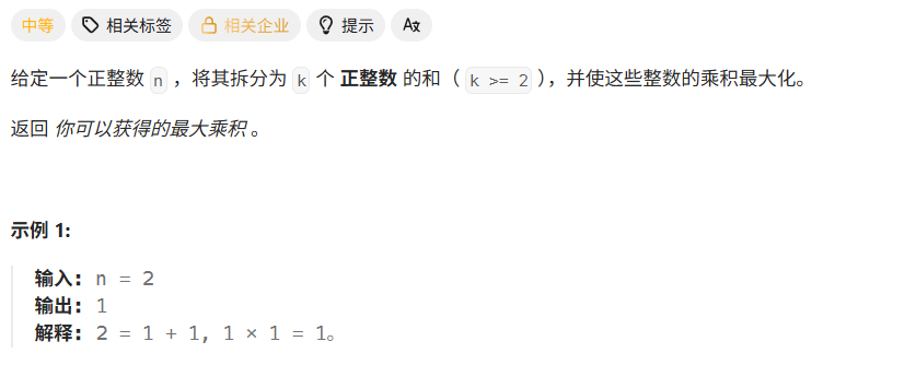 https://leetcode.cn/problems/integer-break/?envType=problem-list-v2&envId=8At1GmaZ