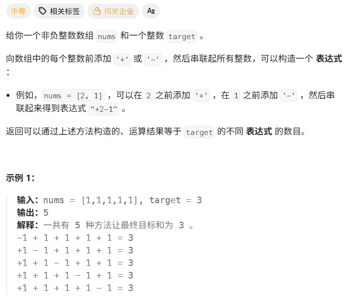 https://leetcode.cn/problems/target-sum/?envType=problem-list-v2&envId=8At1GmaZ