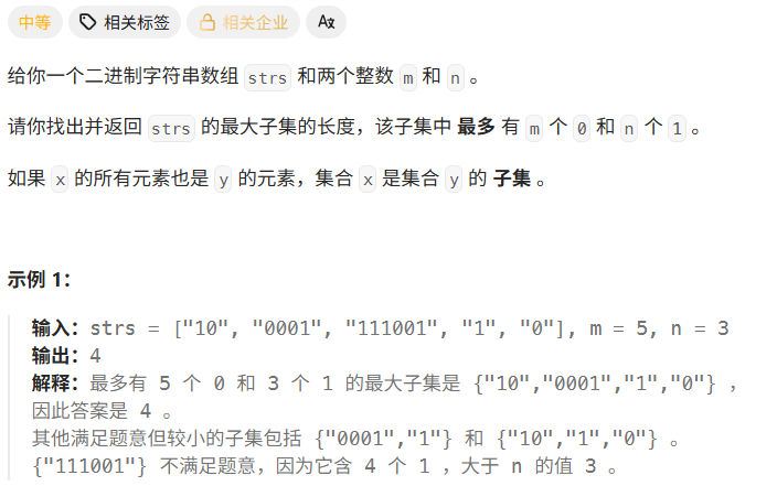 https://leetcode.cn/problems/ones-and-zeroes/?envType=problem-list-v2&envId=8At1GmaZ