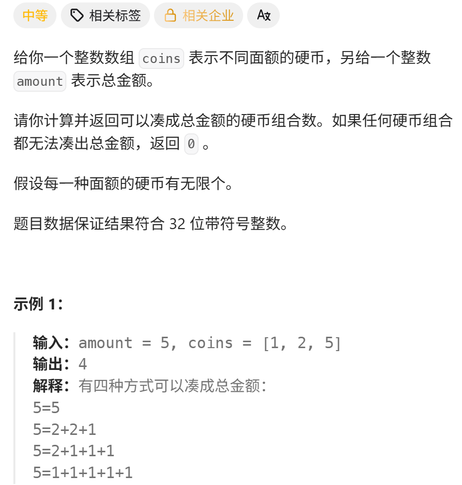 https://leetcode.cn/problems/coin-change-ii/?envType=problem-list-v2&envId=8At1GmaZ