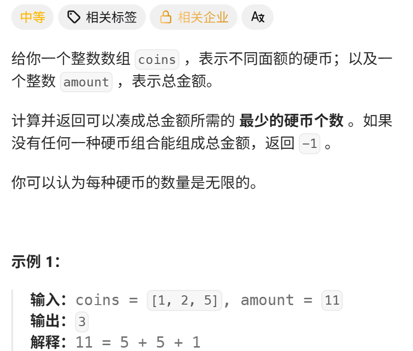 https://leetcode.cn/problems/coin-change/description/?envType=problem-list-v2&envId=8At1GmaZ