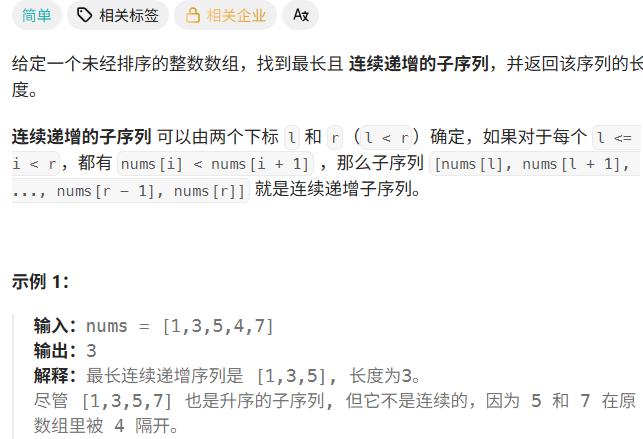 https://leetcode.cn/problems/longest-continuous-increasing-subsequence/description/?envType=problem-list-v2&envId=8At1GmaZ