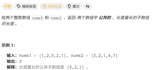 https://leetcode.cn/problems/maximum-length-of-repeated-subarray/description/?envType=problem-list-v2&envId=8At1GmaZ