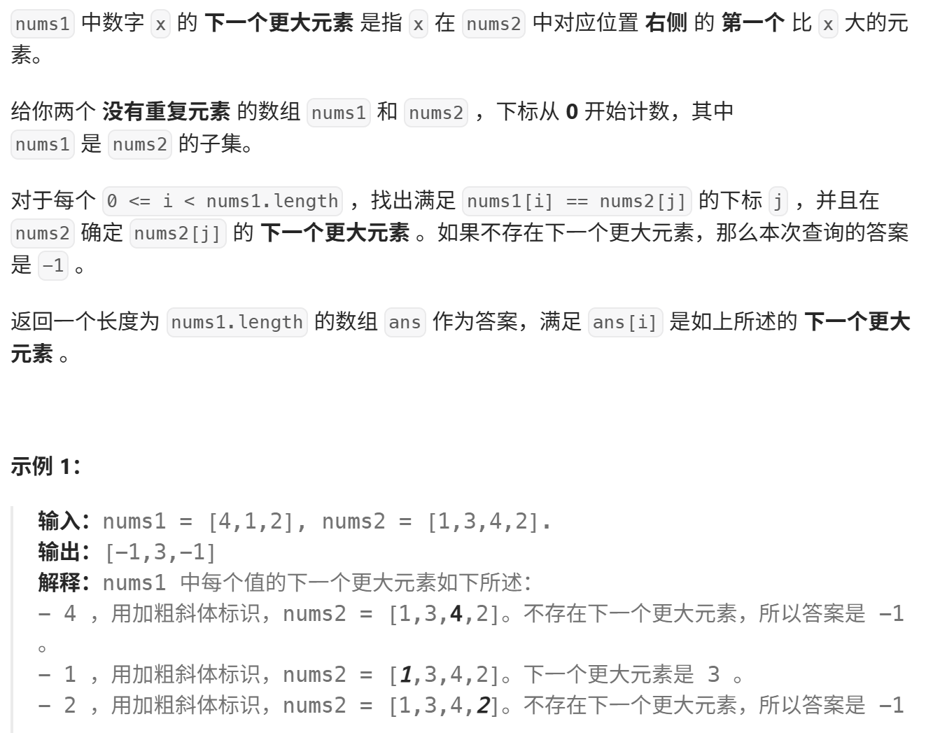 https://leetcode.cn/problems/next-greater-element-i/?envType=problem-list-v2&envId=8At1GmaZ