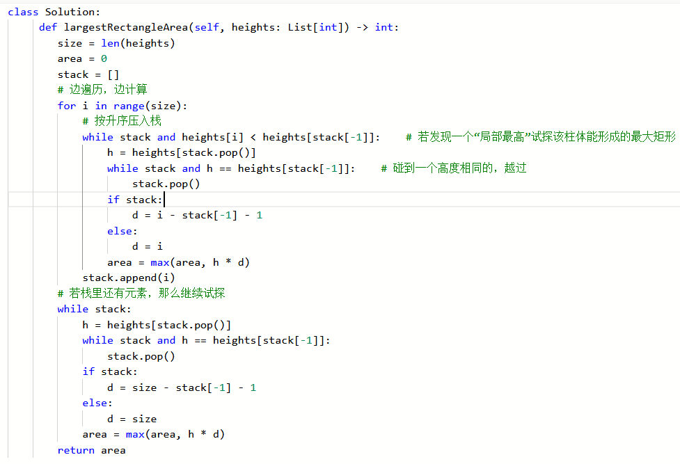 - 遍历所有高度,即可得出最大面积