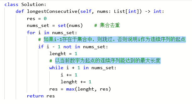 ②这个数不能作为连续序列的起点(存在比它小 1 的数),则跳过它向下一个数遍历