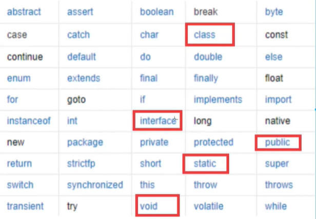 - Java所有的组成部分都需要名字,类名,变量名以及方法名都被称为标识符