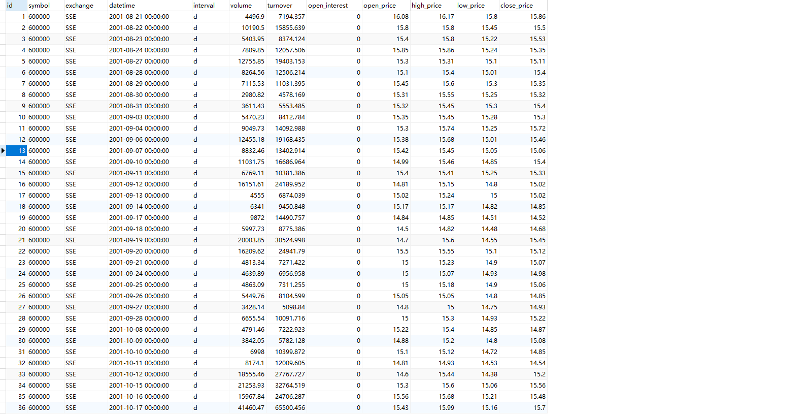 类型 包含数据 历史起始 捐助(元) 频次 沪深A股 1、5、15、30、60分钟 2009年 1000 每分钟500次,每次8000行数据,总量不限制 期货 同上 2010年 1000 同上 期权 同上 2010年 2000,包含股指和商品期权 同上 港股 日线 全历史 1000 每分钟500次,每次3000行,总量不限制 美股 日线,包含估值指标、换手率等 全股票全历史 1000 每分钟500次,每次6000行,总量不限制 数字货币 1~60分钟 2020年开始 1000 每分钟500次,每次8000行,总量不限制 新闻资讯 快讯、长篇新闻、新闻联播、公司公告 3年以上 1000 每分钟400次,总量不限制 -