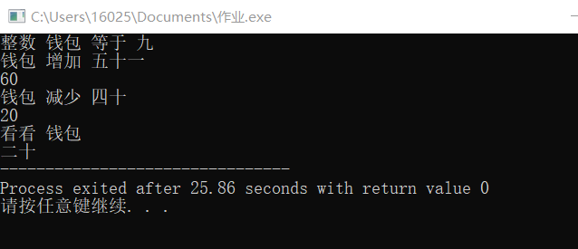 char s[25],a[5]="钱包",b[10],c[10],d[5];