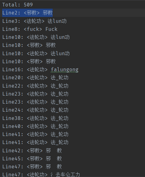 由下图可见,最占据运行时间的是来自pinyin库的函数,即汉字转化成拼音,或许拆字的功能添加上去后可以夺得桂冠,但是我实在找不到python里拆字功能的实现样例,人是真麻了。所以只能基于减少pinyin库函数的使用作为思路进行优化,然而为了实现检测到谐音字的功能,又不得不对整体的文本进行拼音转化(或许有更好的方法,但是人菜实在想不出来TT-TT),这样进一步限制了优化的思路。再思虑到后面有可能添加上的拆字功能,必将会占据运行时间的大头,笔者不得已放弃了对他的优化。还不如提早花费时间去解决拆字功能的实现,然后再针对其进行优化。然而天不随人愿,只能后续看看大佬操作了