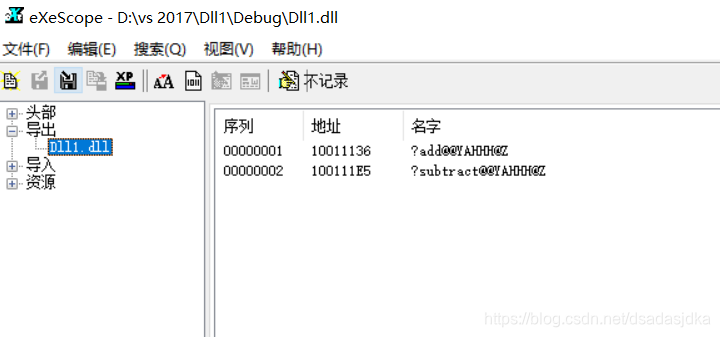 (也可以使用dumpbin命令进行查看)
