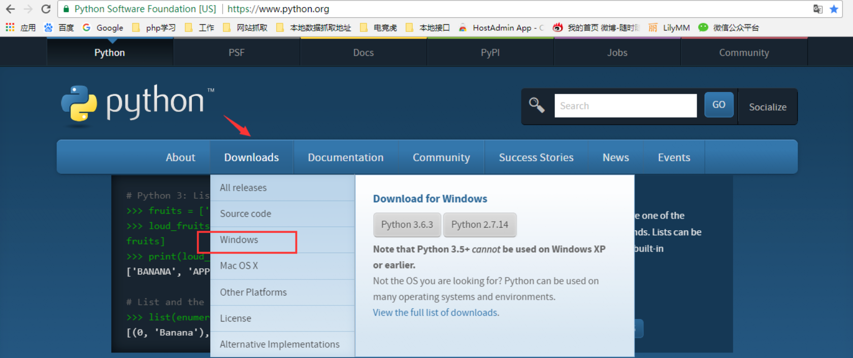 1、打开官网:http://www.python.org 点击Downloads下载,如下图