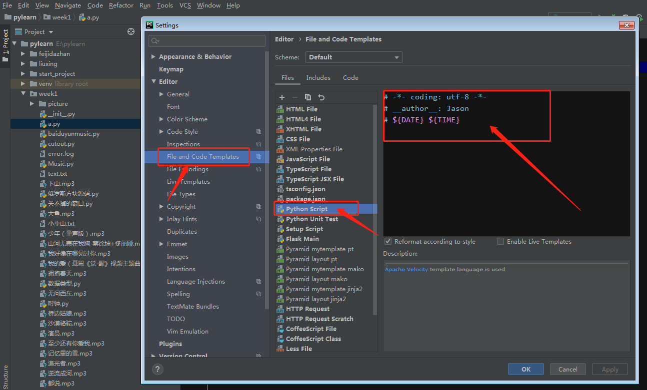 打开pycharm,file -----Settings------file and code templats----Python Scripts将下面代码粘贴进去即可(有自己另外的需求也可添加进去):