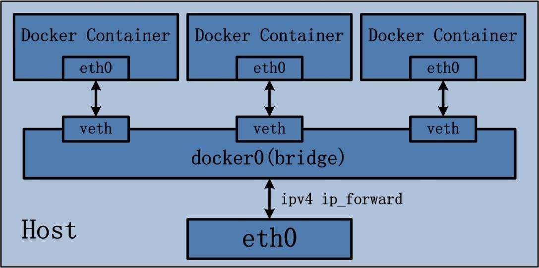 每一个容器都类似于虚拟机一样有自己的网卡、 监听 端口、TCP /IP 协议栈等。Docker使用network namespace 启动一个vethX接口,这样容器将拥有它自己的桥接ip地址,通常是docker0。而docker0实质就是Linux的虚拟网桥,网桥是在OSI七层模型的数据链路层的网络设备,通过mac地址对网络进行划分,并且在不同网络直接传递数据。