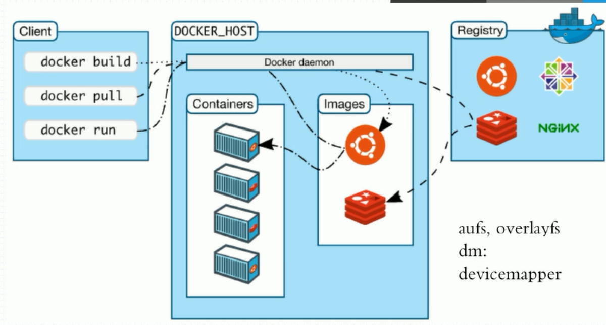 Docker 服务端 (Server): Docker 守护进程, 运行Docker容器。