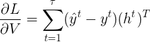 = V(tanh( Ux_t + Wh_t-1 + b) )+ c