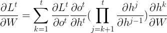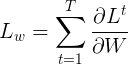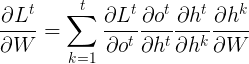 所以某时刻对\(W\)的梯度损失可以表达为: