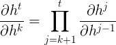 是当前时刻对\(k\)时刻的偏导,这里可以继续展开为: