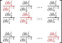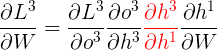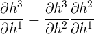 \(h^1\)的函数是\(h^2\), \(h^2\)的函数又是\(h^3\),所以这里又可以根据链式法则写成: