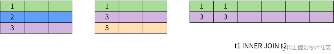 内连接(Inner Join)返回两个表中满足连接条件的数据,内连接的原理如下图所示: