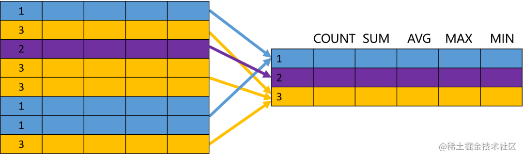 所以说,GROUP BY 改变了集合元素(数据行)的结构,创建了一个全新的关系。