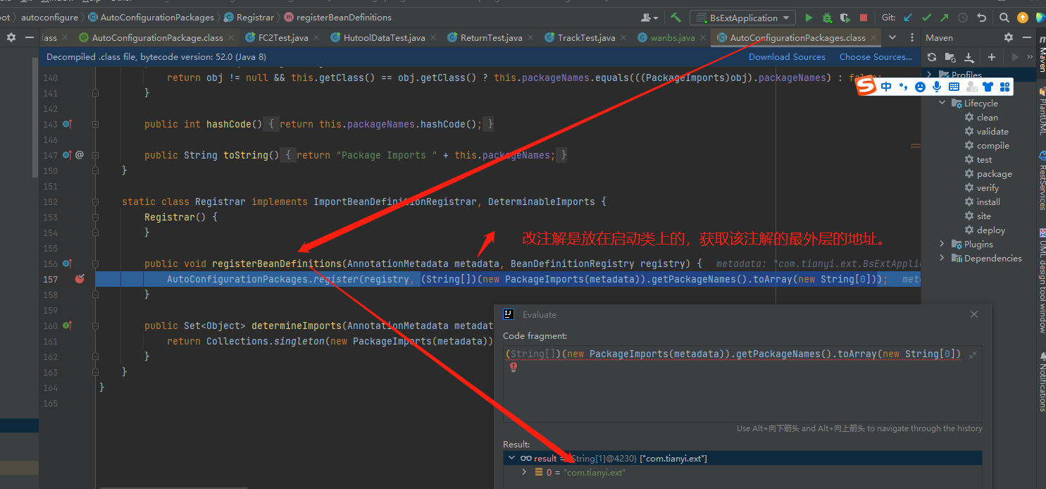 1. 分析 @AutoConfigurationPackage 它主要是获取容器的最外层包名利用@import 注解讲该包下的所有组件(bean)全部导入到容器中,完成我开发自定义bean的加载