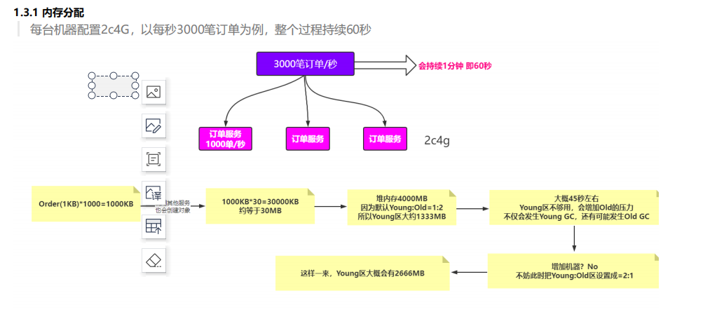 可以根据业务场景,挑战yang:old 区的比例。比如秒杀。默认 old:yang = 2:1 如果公司内存紧张,可以短暂调到 1:2.