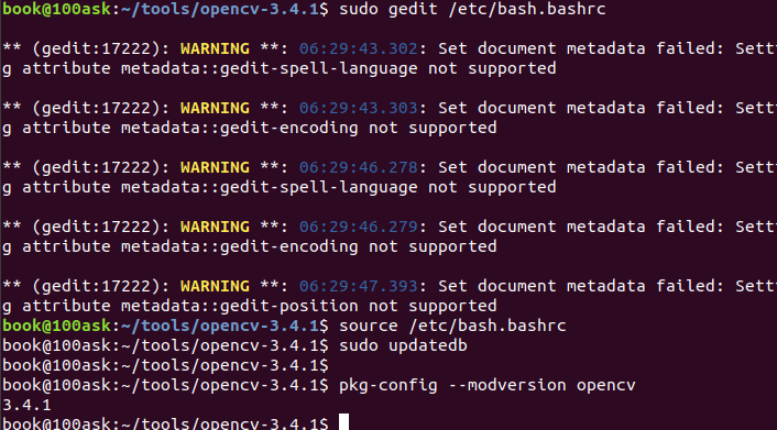 首先需要在Ubuntu上安装opencv库,这里选择3.4.1版本的,注意此处的版本和开发板中的没有必须要版本一致,因为原本的系统已经自带了opencv库3.1