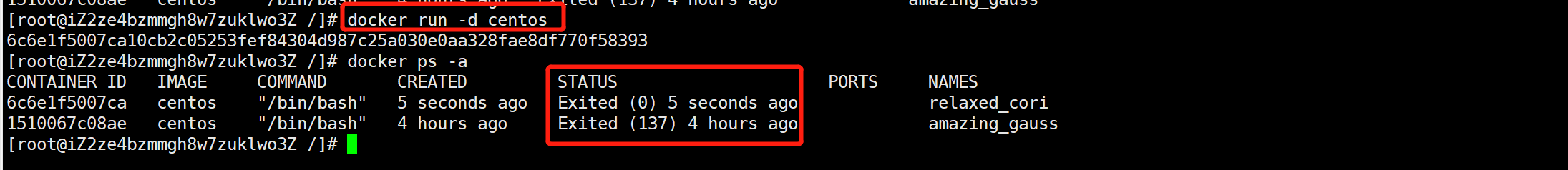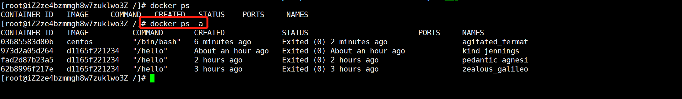 docker ps -a。查看所有容器,包括历史曾经运行过的容器。
