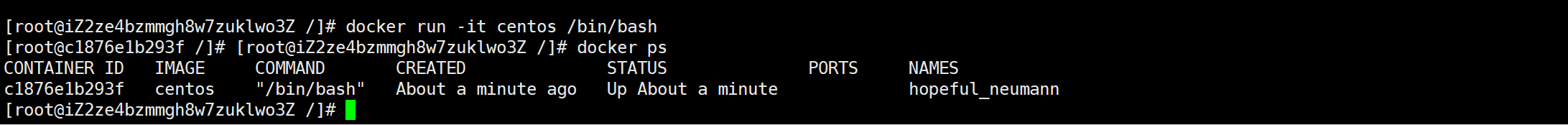 例子:docker run -it centos /bin/bash。以交互的方式运行centos容器(需要先拉去centos镜像),/bin/bash是控制台的地址。