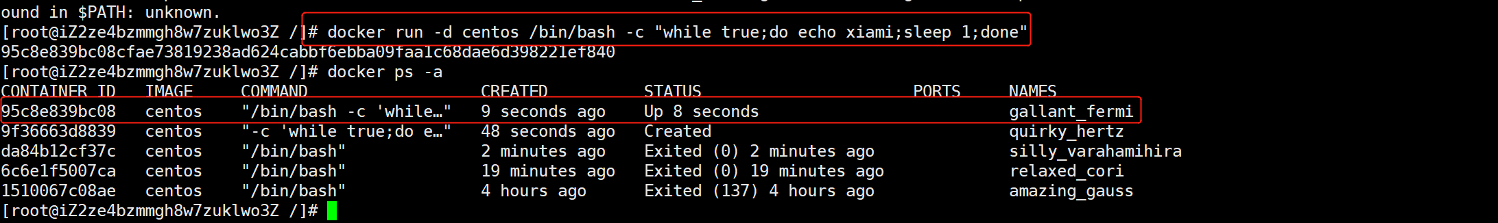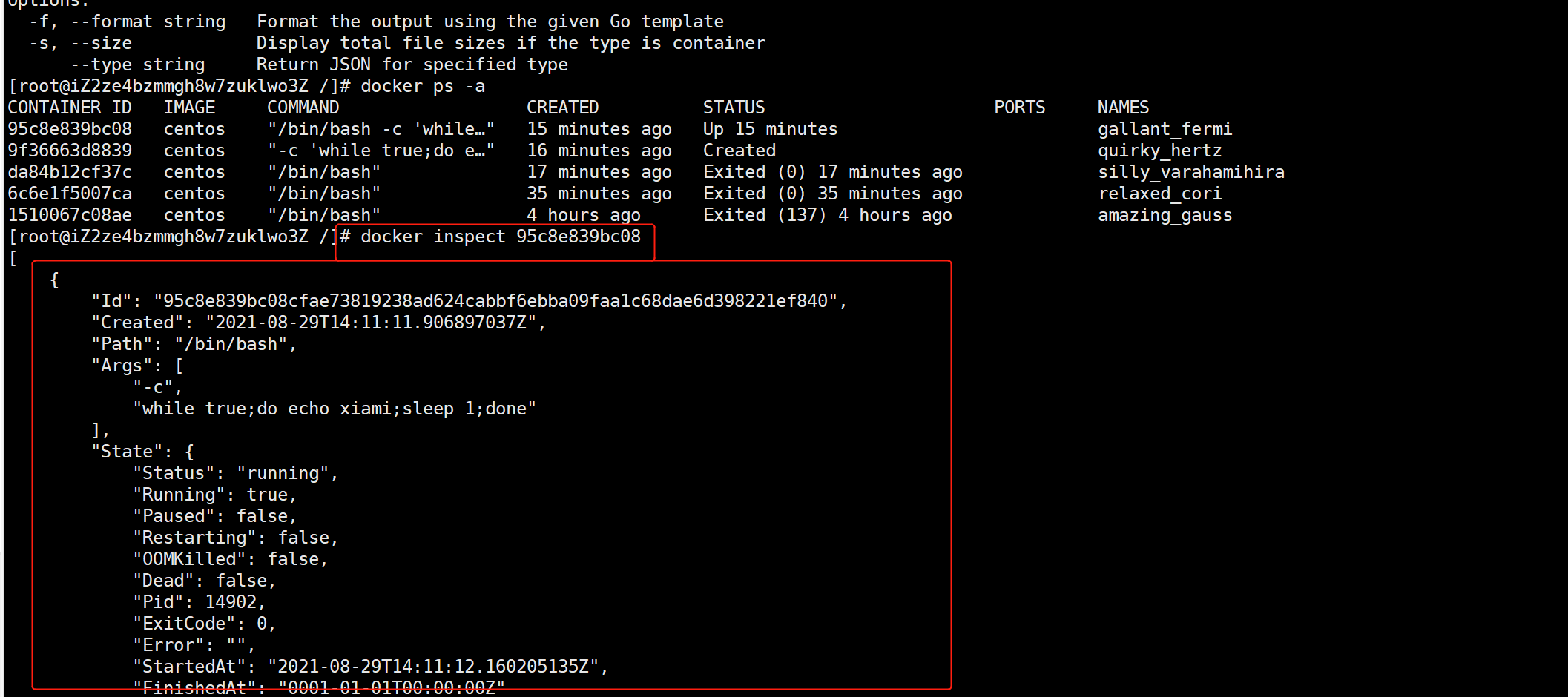 (1)先创建一个容器实例,并往里面生产日志。命令:docker run -d centos /bin/bash -c "while true;do echo xiami;sleep 1;done"