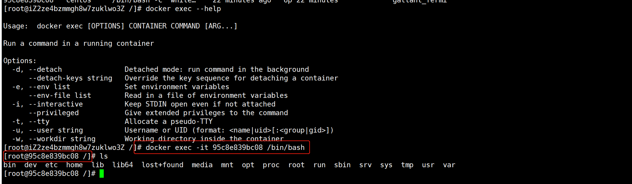 方式二:进入容器中正在执行的命令行,不会启动新的进程。