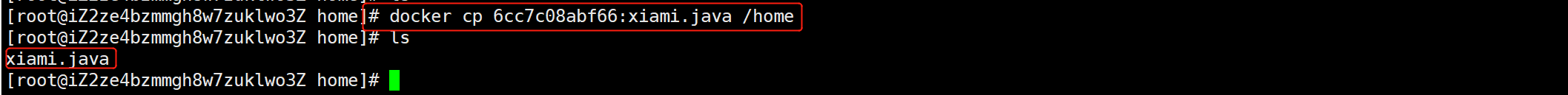 命令:docker cp 容器id:目标文件路径+文件名 主机目标路径
