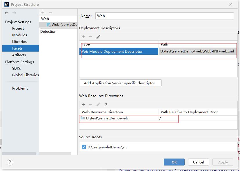 如果是导入别的项目,可以在project structure -> facets -> + -> web 中修改相关配置。