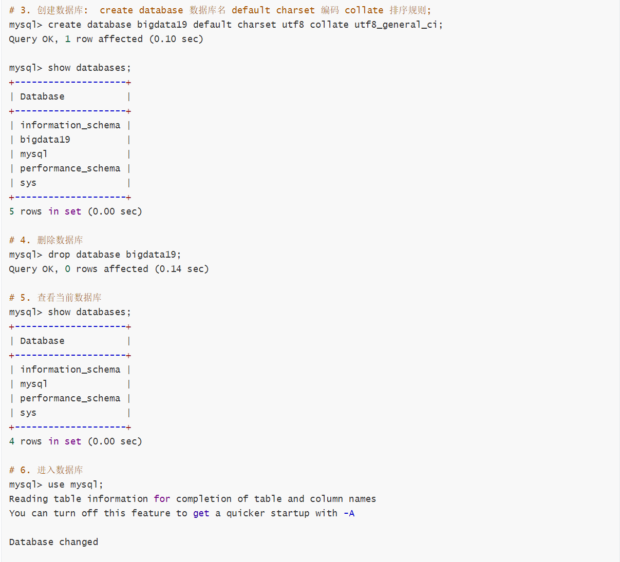 create database 数据库名 DEFAULT CHARSET utf8 COLLATE utf8_general_ci;create database bigdata19;