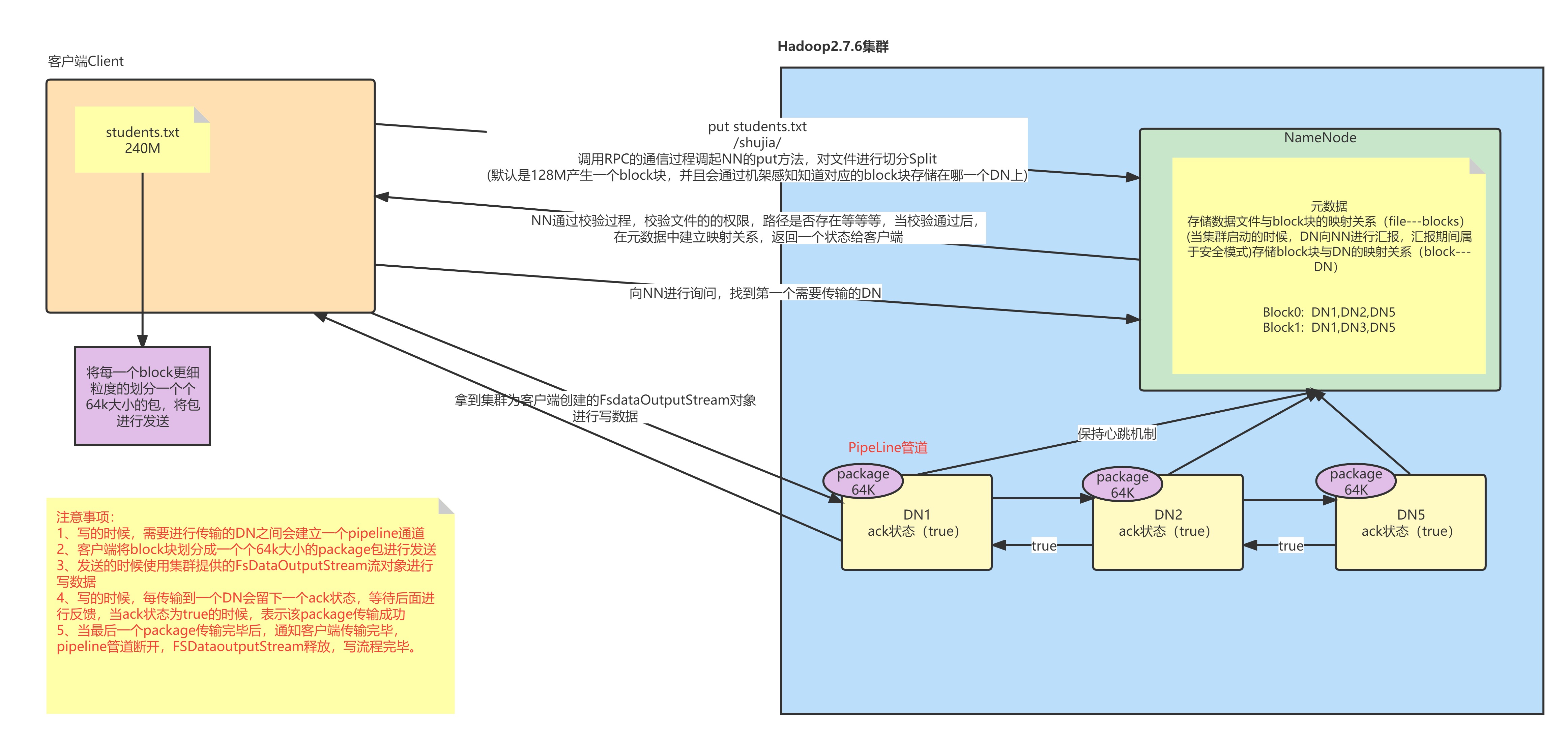1. 如果客户端接收到最后一个 pakcet 的成功状态 , 说明当前 block 传输完成,管道就会被撤销