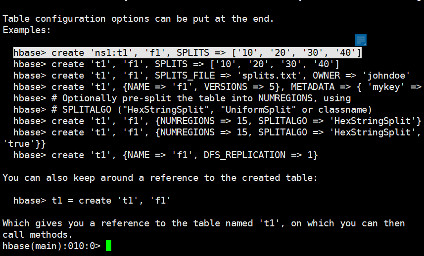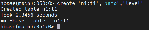 在创建表的时候可以选择创建到bigdata19这个namespace中,如何实现呢? 使用这种格式即可:‘命名空间名称:表名’ 针对default这个命名空间,在使用的时候可以省略不写