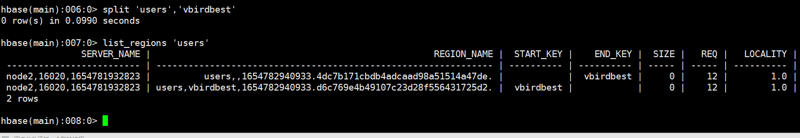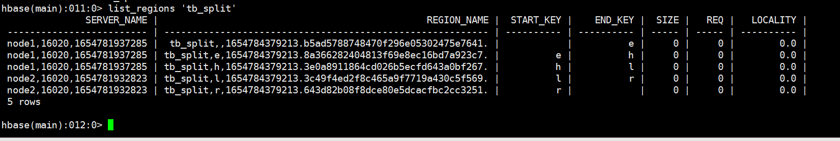 create 'tb_split','cf',SPLITS => ['e','h','l','r']