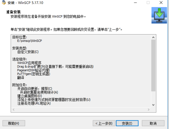 请到WinSCP下载页面(英文),单击您想下载的版本所对应的“Installation package”下载安装包。然后到翻译页面(英文)选择下载简体中文(Simplified Chinese)插件,将 ZIP 包解压缩到 WinSCP 安装路径。此软件还可以结合 putty,以方便用户的远程登录。