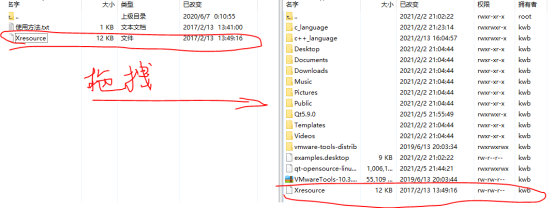 1、登录winscp,左边先找到需要传到ubuntu的文件Xresource,然后通过拖拽的方法即可将文件发送至ubuntu,如下所示: