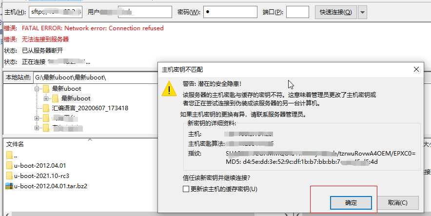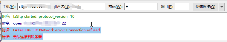 使用File Zilla连接虚拟机ubuntu时出现:“错误: FATAL ERROR: Network error: Connection refused 错误: 无法连接到服务器”的问题