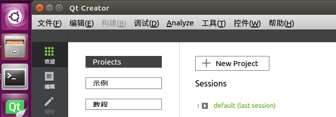 咱们已经默认安装了Qt软件,不管是Windows下的还是Linux下的都可以,操作都是一样的,我自己安装的是Linux下的Qt5.9,具体的安装步骤网上教程一大堆,这里就不赘述了,话不多说,直接上手第一个Qt程序: