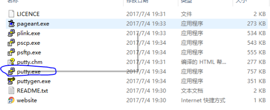 5、进入安装路径下双击putty.exe文件;